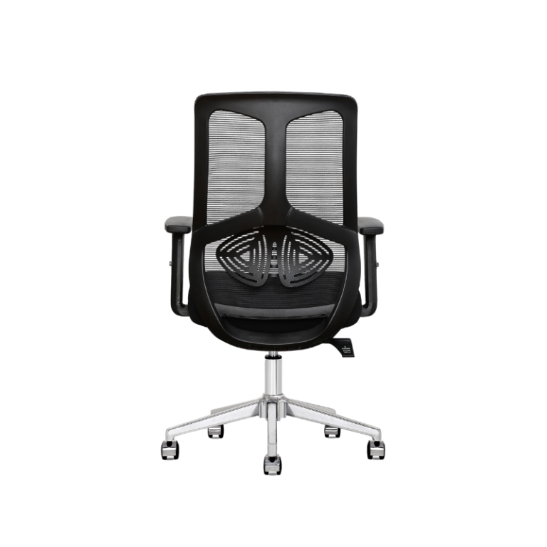- Back: PP with fiber back frame, with adjustable headrest and fixed lumbar support, mesh upholsteried.