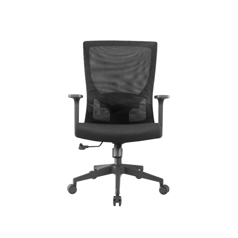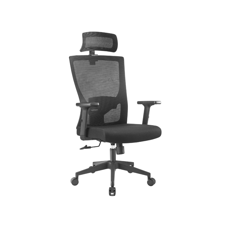 - Back: PP with fiber back frame, with adjustable headrest and fixed lumbar support, mesh upholsteried.