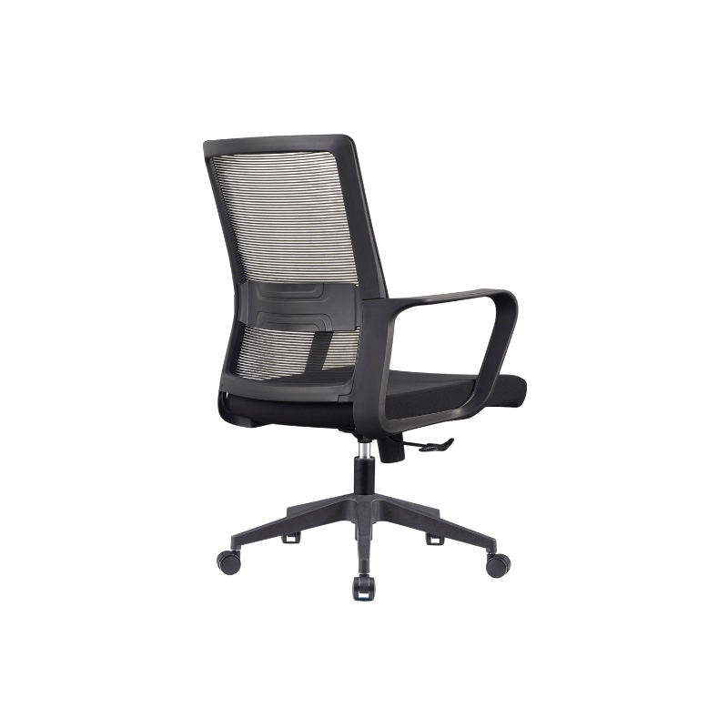 - Back: PP with fiber back frame, with fixed lumbar support, mesh upholsteried